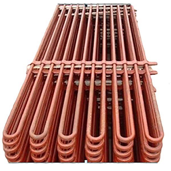 鋼管式省煤器不受壓力限制,可以用作沸騰式,一般由外徑為32~51毫米的碳素鋼管制成。有時(shí)在管外加鰭片和肋片,以改善傳熱效果。鋼管式省煤器由水平布置的并聯(lián)彎頭管子(習(xí)稱(chēng)蛇形管)組成。